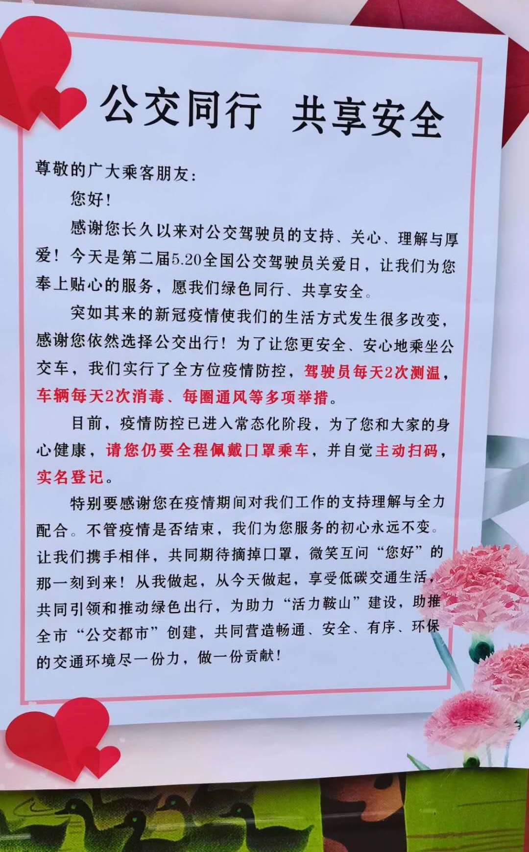 很多人都知道5月20日是諧音“我愛你”,但這一天還是全國第二個(gè)公交駕駛員關(guān)愛日。 鞍山公交駕駛員謝金紅根據(jù)自己20年的公交駕駛經(jīng)驗(yàn),首創(chuàng)“321斑馬線禮讓行人法”之后,越來